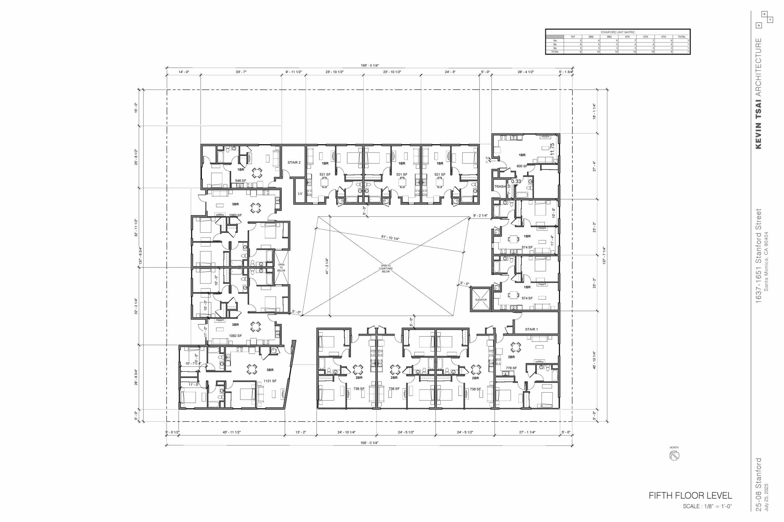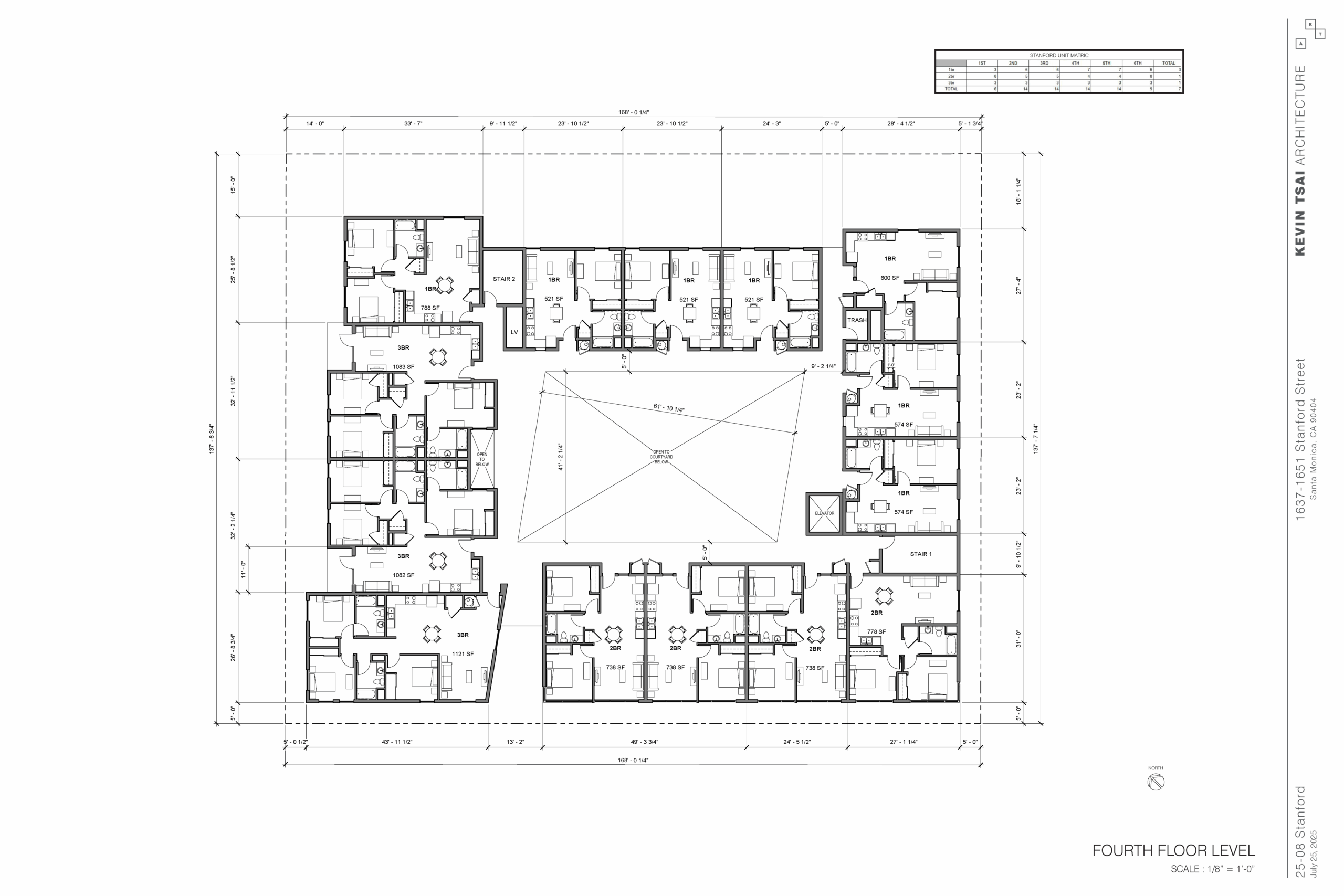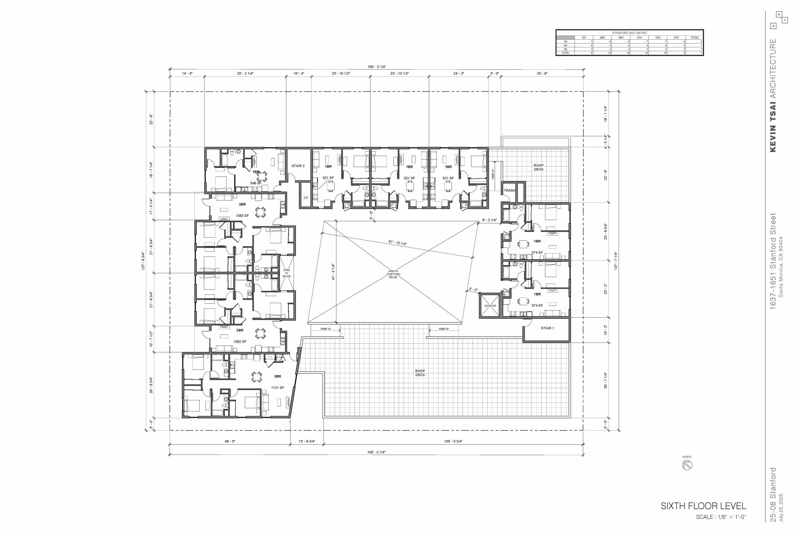“Stanford,” the proposed project, represents a 71-unit 100% affordable multifamily community that will target large family households earning between 30%-80% AMI. There will be 35 one-bedrooms, 18 two-bedrooms (including 1 manager’s unit), and 18 three-bedrooms. The project spans approximately 66,900 sf of residential and amenity space, with a maximum height of six stories. Stanford will include a courtyard, community room, tot-lot, laundry room, bike storage room, 54 parking spaces, edible garden, roof deck, and offices for property management and residential services.